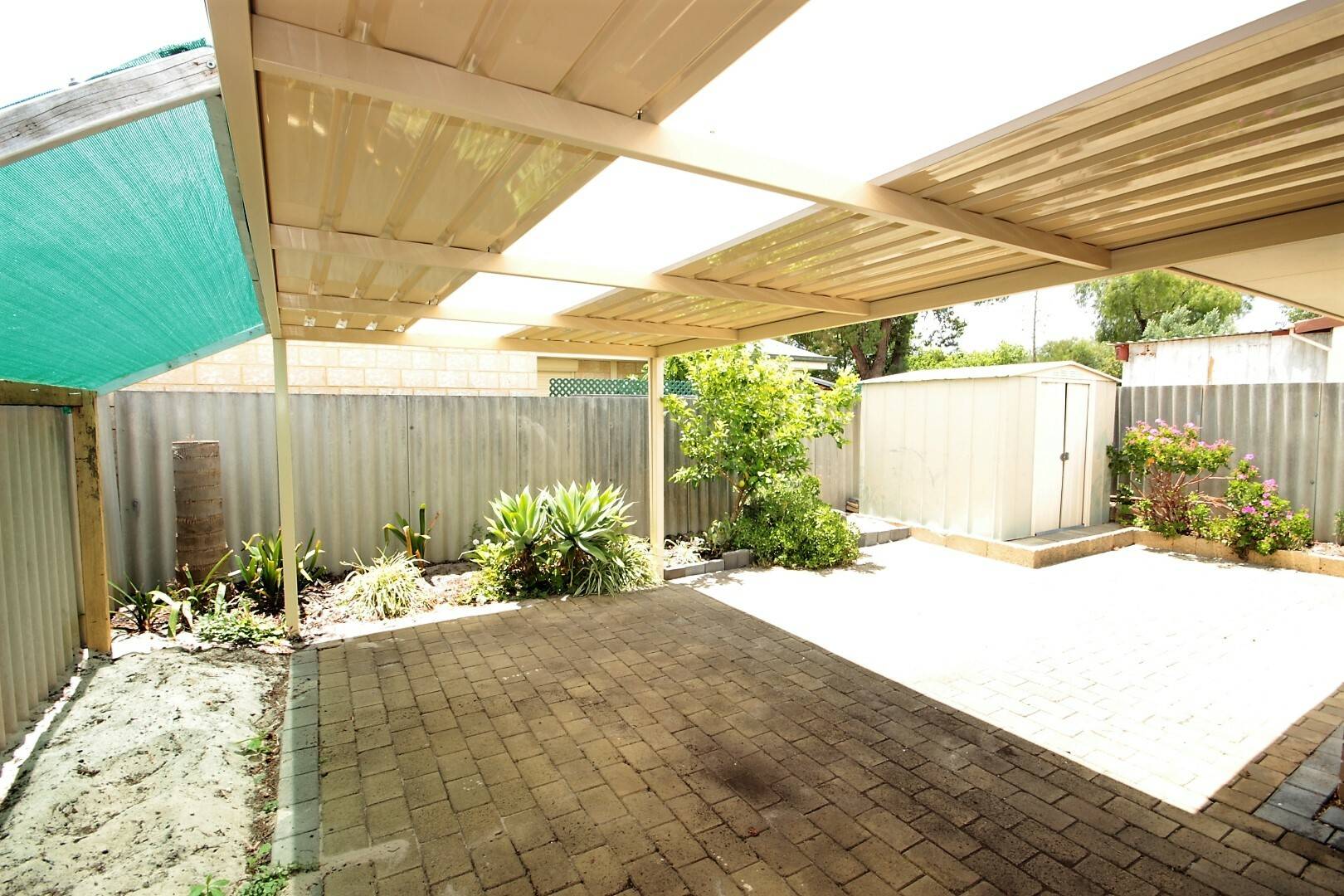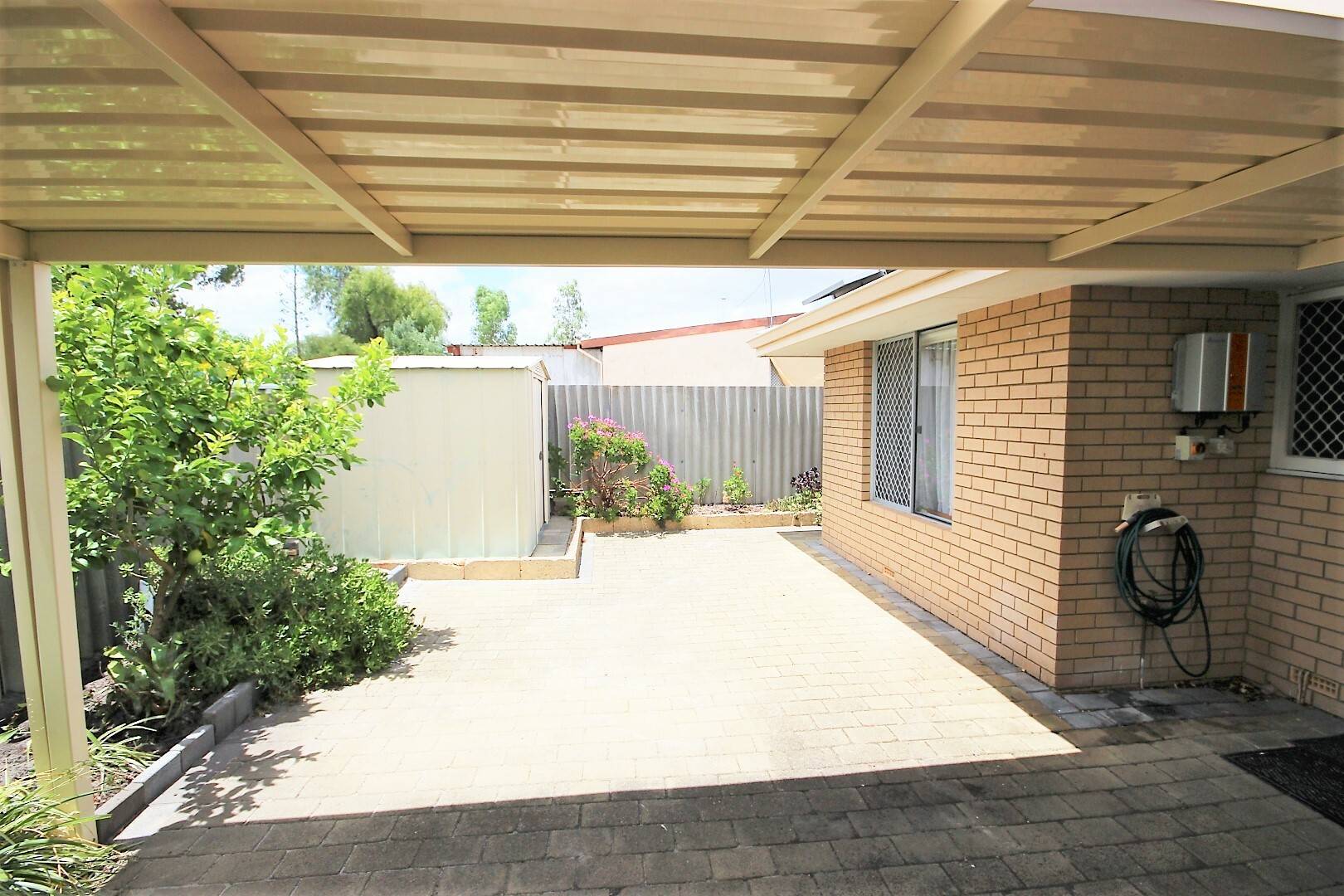 * Garden shed and easy care rear courtyard garden.